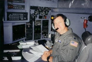 Photograph: Alan Leonard at his C-130 “nav station” during Bosnia operations, 1998