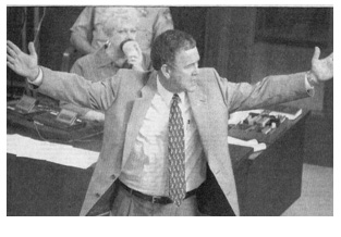 Photograph: While serving as an Assistant District Attorney, Alan Leonard tells jurors that parts of the defendant's version of events in a high-profile murder case are "ridiculous."